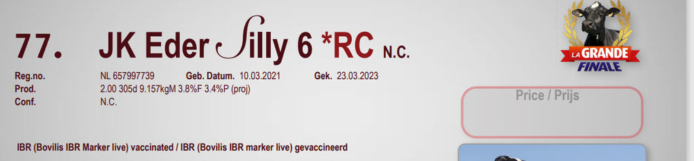 dam to JK Eder Silvy 1, the former #2 gRZG Shamrock daughter in