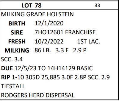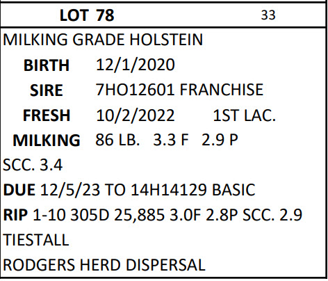 DAIRY COW AND HEIFER SALE - BRUBACKER'S QUALITY DAIRY SALES