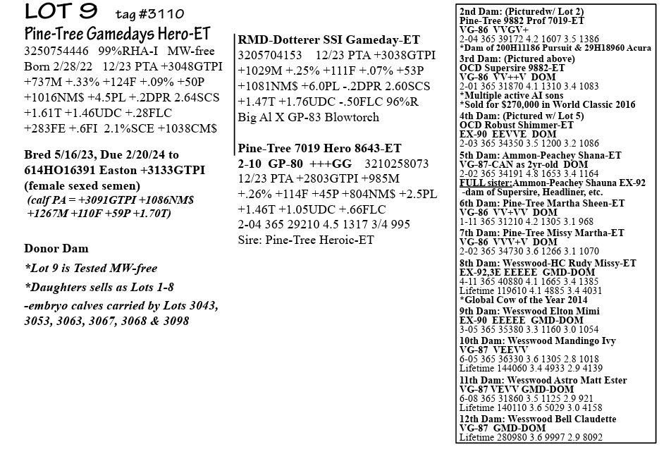 *Daughters sells as Lots 1-8-embryo calves carried by Lots 3043,