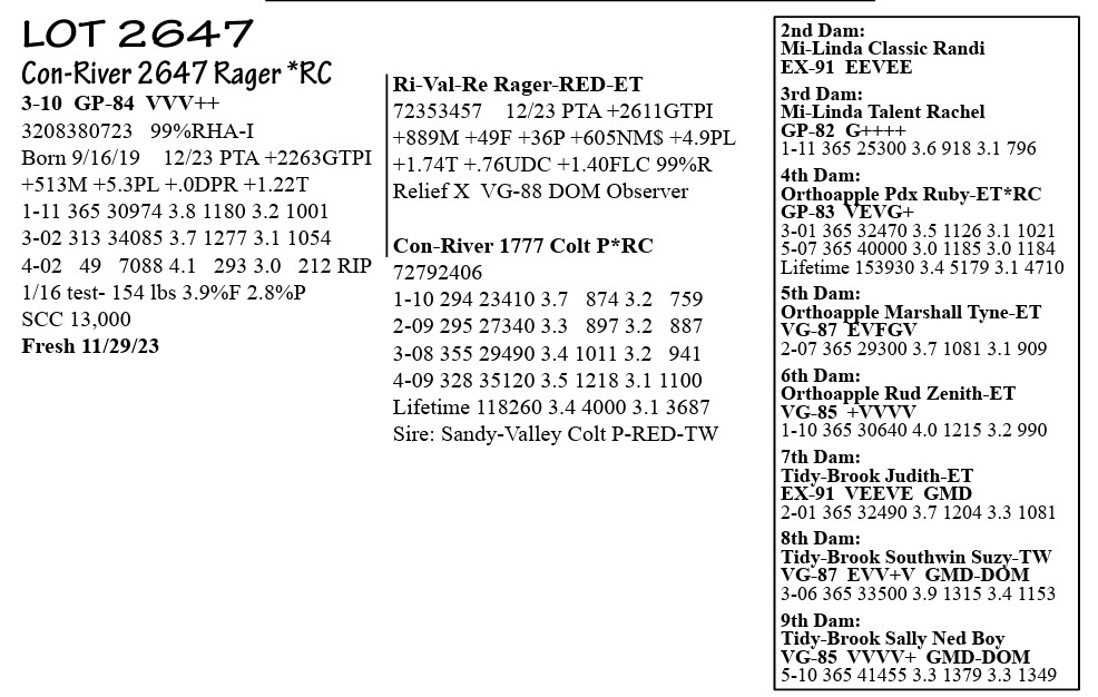 Conrad Farm Registered Holsteins Complete Dispersal
