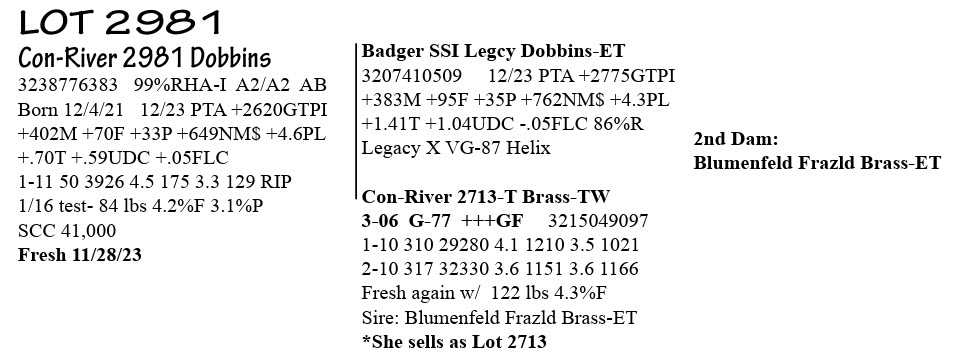 Conrad Farm Registered Holsteins Complete Dispersal