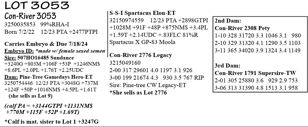 *Calf is mat. sister to Lot 1 +3247G