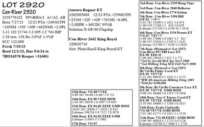 3238776318 99%RHA-I A2/A2 Born 7/18/21 12/23 PTA +2561GTPI +624M +66F +37P +567NM$ +3.1PL +.1DPR +.98T +.59UDC 2-02 93 9630 4.3 413 3.0 290 RIP 1/16 test- 113 lbs 4.0%F 3.0%P SCC 27,000 Fresh 10/16/23