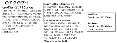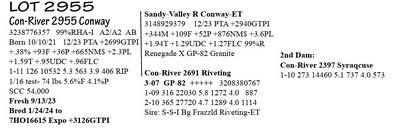 3238776355 99%RHA-I A1/A2 BE Born 10/7/21 12/23 PTA +2464GTPI +1052M +68F +39P +435NM$ +1.46T +.99UDC +.33FLC 1-11 109 13555 4.2 576 3.1 421 RIP 1/16 test- 137 lbs 4.6%F 3.2%P SCC 13,000 Fresh 9/30/23