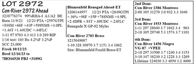 3238776394 99%RHA-I A2/A2 BB Born 12/22/21 12/23 PTA +2745GTPI +427M +66F +42P +703NM$ +3.6PL +1.96T +1.99UDC +1.14FLC 1-11 40 2613 5.5 143 3.4 88 RIP 1/16 test- 81 lbs 5.2%F 3.2%P SCC 162,000 Fresh 12/8/23