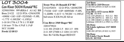 3250035804 99%RHA-I A1/A2 BB Born 2/4/22 12/23 PTA +2563GTPI +890M +18f +33P +523NM$ +5.3PL +1.77T +1.98UDC +1.35FLC 1-10 30 1756 4.5 79 3.1 55 RIP 1/16 test- 75 lbs 4.5%F 3.1%P SCC 18,000 Fresh 12/18/13