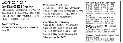 3267672021 99%RHA-I A2/A2 AB Born 12/10/22 12/23 PTA +2594GTPI +2016M +62F +55P +639NM$ +3.0PL +.76T +.66UDC +.11FLC Bred 1/23/24 to 550HO14134 Renegade +945GTPI (sexed)