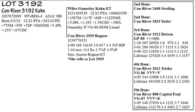 3267672090 99%RHA-I A2/A2 BB Born 8/3/23 12/23 PTA +2943GTPI +816M +.21% +93F +.12% +59P +924NM$ +4.4PL -.3DPR 3.00SCS +1.73T +1.33UDC +1.03FLC +256FE +.3FI 2.2%SCE +943CM$ *Haplotype free *Mat. sisters sell as Lots 10-13 & 3186