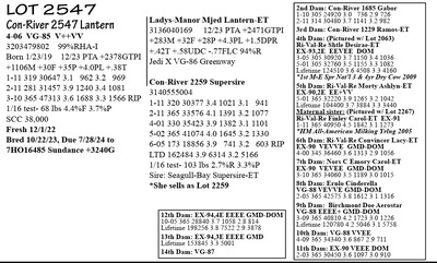 3203479806 12/23 PTA +2358GTPI +1386M +50F +36P +.96T +1.06UDC 2-01 365 33235 3.8 1255 3.1 1044 3-09 365 35995 4.2 1507 3.8 1356-last lactation SCC avg. 97,000 Fresh 1/2/24