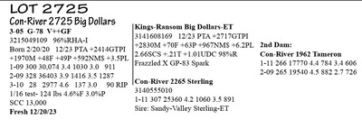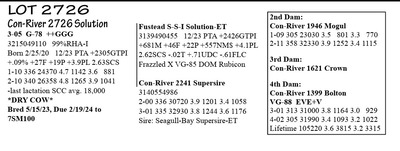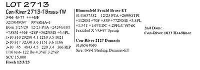 3-05 G-78 V++GF 3215049109 96%RHA-I Born 2/20/20 12/23 PTA +2414GTPI +1970M +48F +49P +592NM$ +3.5PL 1-09 300 30,074 3.4 1030 3.0 911 2-09 328 36403 3.9 1416 3.5 1287 3-10 28 2977 4.6 137 3.0 90 RIP 1/16 test- 124 lbs 4.6%F 3.0%P SCC 13,000 Fresh 12/20/23