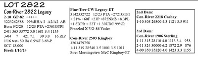2-10 GP-82 +++++ 3223262588 99%RHA-I A2/A2 AB Born 9/2/20 12/23 PTA +2561GTPI 2-01 365 33772 5.0 1681 3.4 1155 3-04 7 421 7.1 30 3.8 16 RIP 1/16 test- 80 lbs 6.9%F 3.6%P SCC 18,000 Fresh 1/10/24