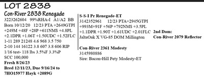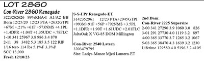 3223262626 99%RHA-I A1/A2 BB Born 12/25/20 12/23 PTA +2632GTPI +67M +.21% +61F +573NM$ +4.1PL +1.4DPR +1.04T +1.35UDC +.78FLC 1-10 341 25967 3.8 986 3.4 870 2-11 38 3482 5.3 185 3.5 122 RIP 1/16 test- 114 lbs 5.1%F 3.3%P SCC 13,000 Fresh 12/10/23