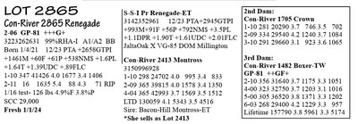 2-08 GP-80 +VGF+ 3223262617 99%RHA-I A1/A2 BB Born 11/14/20 12/23 PTA +2677GTPI +1265M +65F +55P +522NM$ +1.0PL +1.19T +1.25UDC +.09FLC 1-10 365 38424 3.8 1453 3.5 1349 3-00 47 5597 4.4 249 3.4 192 RIP 1/16 test- 137 lbs 4.2%F 3.2%P SCC 29,000 Fresh 12/1/23
