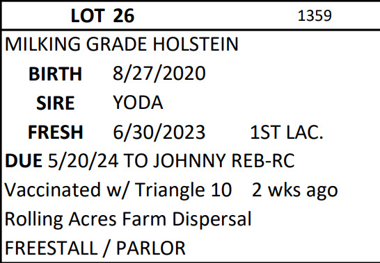 DAIRY COW AND HEIFER SALE - BRUBACKER'S QUALITY DAIRY SALES