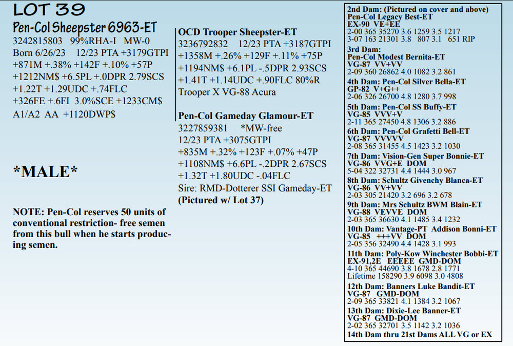 NOTE: Pen-Col reserves 50 units of conventional restriction- free semen from this bull when he starts producing semen.