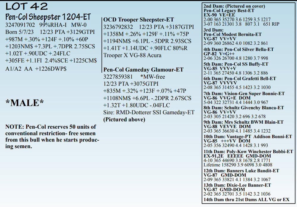NOTE: Pen-Col reserves 50 units of conventional restriction- free semen from this bull when he starts producing semen.