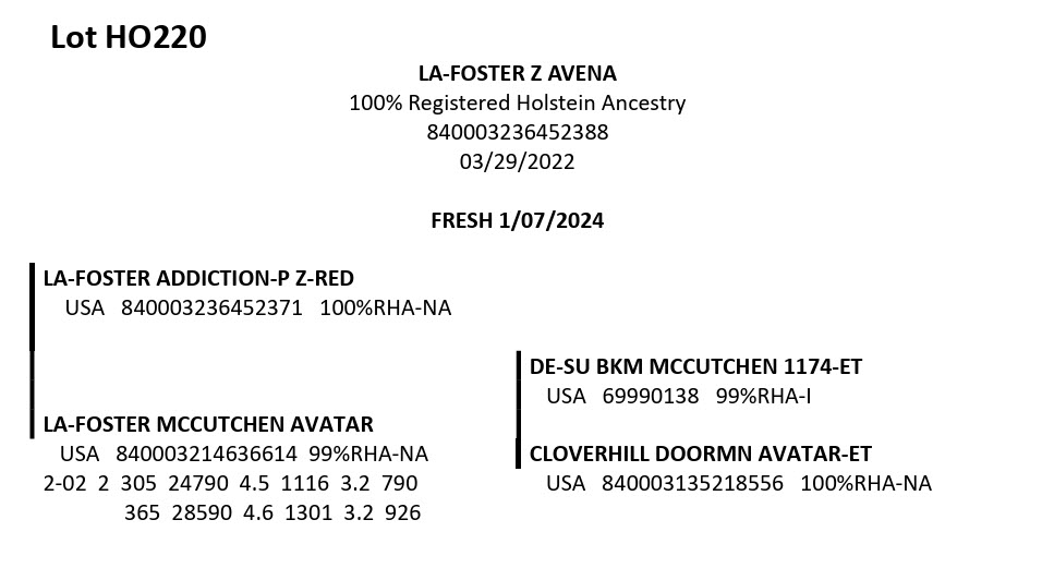 La-Foster Dairy Milking Herd and Bred Heifer Dispersal