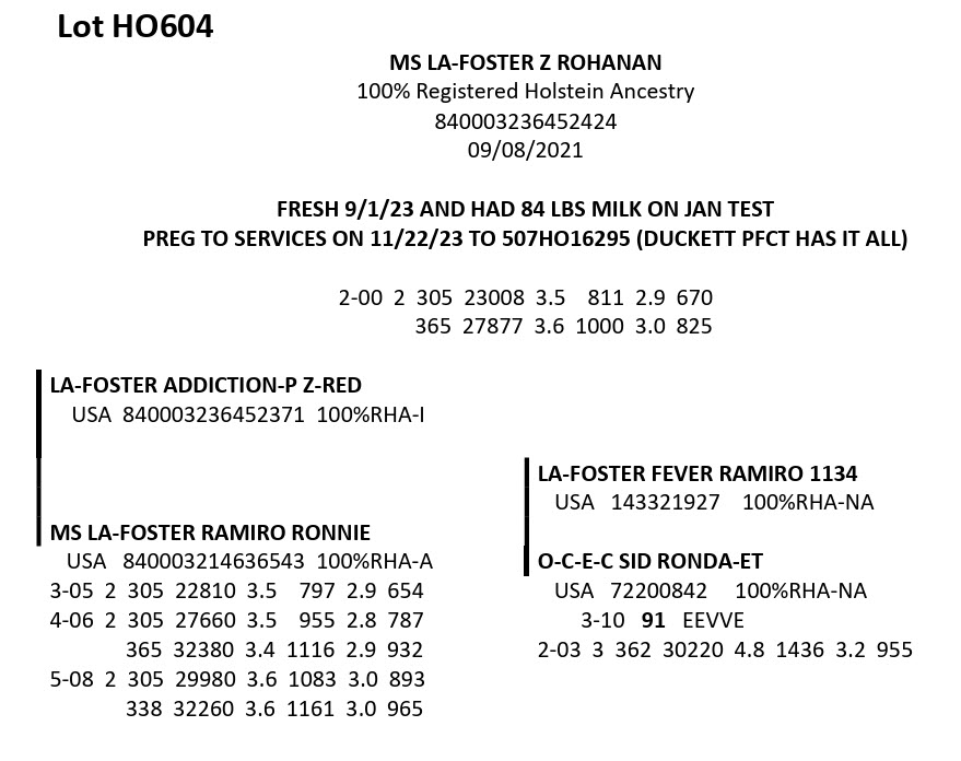 La-Foster Dairy Milking Herd and Bred Heifer Dispersal