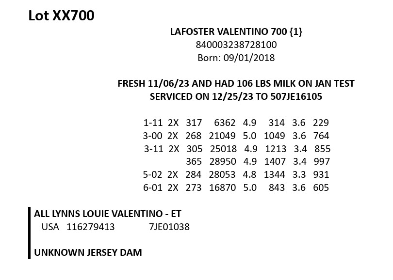 La-Foster Dairy Milking Herd and Bred Heifer Dispersal
