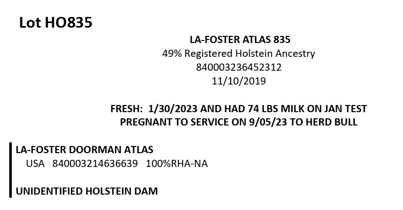 La-Foster Dairy Milking Herd and Bred Heifer Dispersal