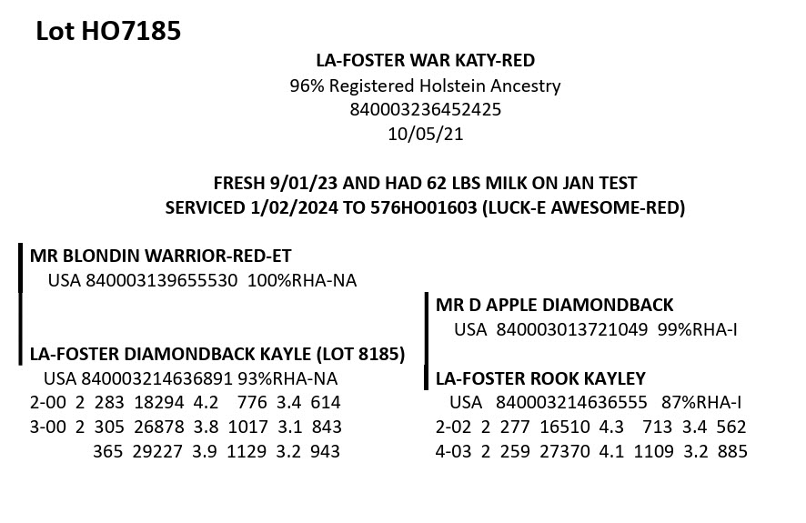 La-Foster Dairy Milking Herd and Bred Heifer Dispersal