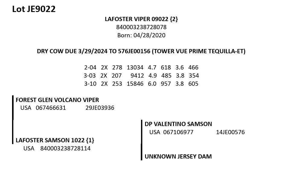 DRY COW DUE 3/29/2024 TO 576JE00156 (TOWER VUE PRIME TEQUILLA-ET)