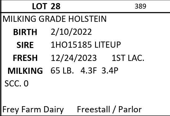 DAIRY COW AND HEIFER SALE - BRUBACKER'S QUALITY DAIRY SALES
