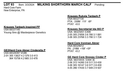 Born: 12/2/2017 HARD CORE PREMIUM ROLEX EXP ET EX91 68323298 Hard Core Farm Due September 1, 2024 to Sexed Hard Core Lottery Spiderman New Enterprise, PA 6 YR OLD