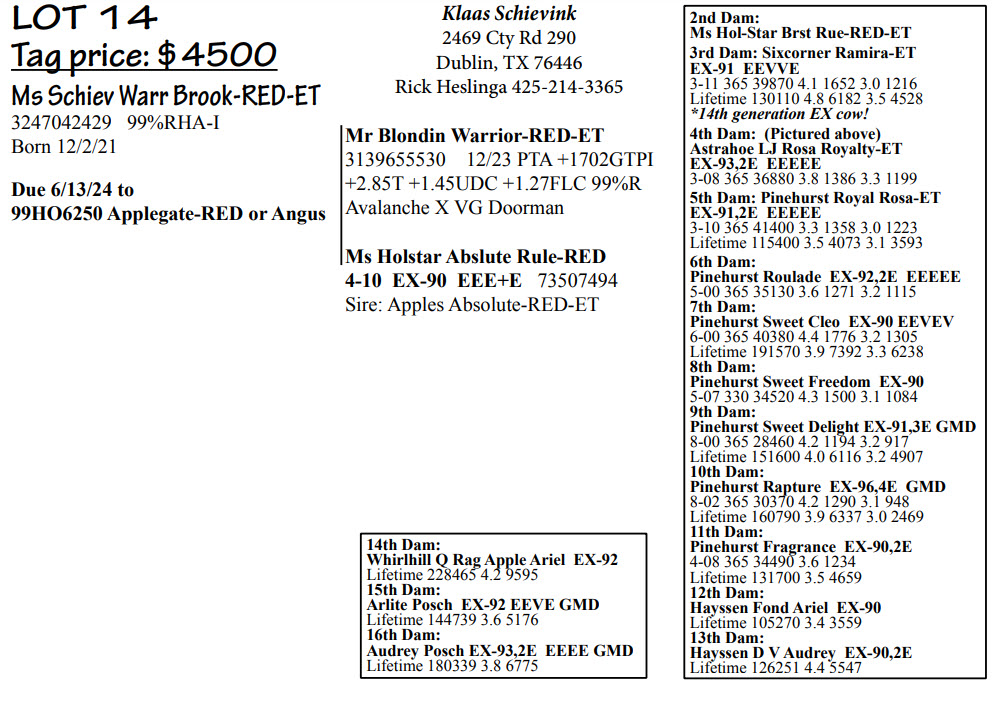 Due 6/13/24 to 99HO6250 Applegate-RED or Angus
