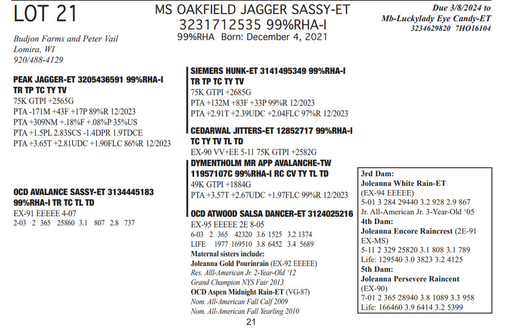 99%RHA Born: December 4, 2021 Due 3/8/2024 to Mb-Luckylady Eye Candy-ET 3234629820 7HO16104