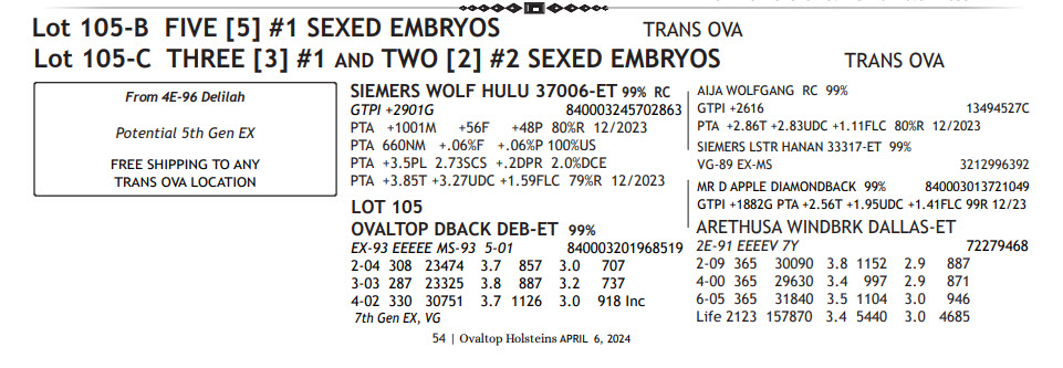 FIVE [5] #1 SEXED EMBRYOS From 4E-96 Delilah