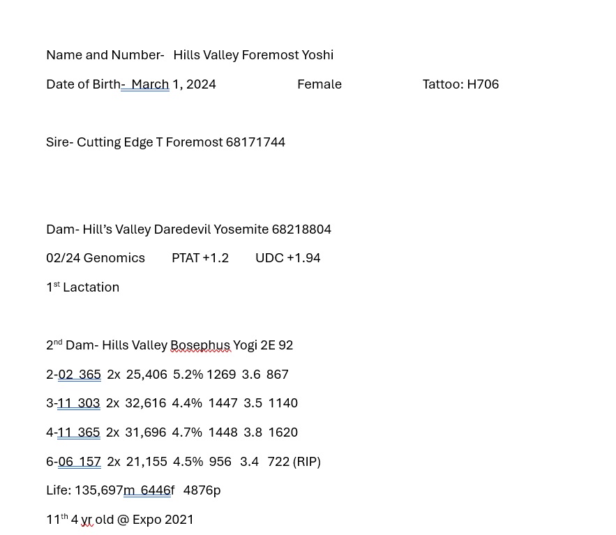 NOTES: Dam is 1.94 GUDC, 2nd Dam Bosephus Yogi 2E 92