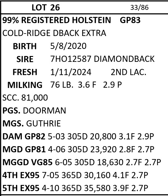 DAIRY COW AND HEIFER SALE - BRUBACKER'S QUALITY DAIRY SALES