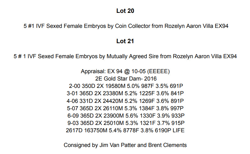 5 # 1 IVF Sexed Female Embryos by Mutually Agreed Sire from Rozelyn Aaron Villa EX94