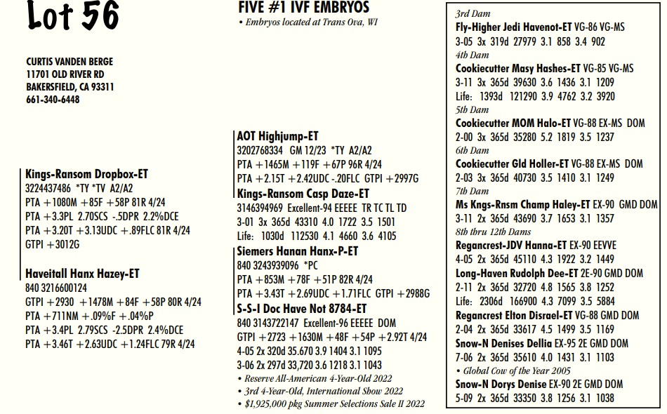 Buyer keeps all resulting embryos from these controlled IVF sessions. Buyer is responsible for all costs of the aspiration and mating sire decision.
