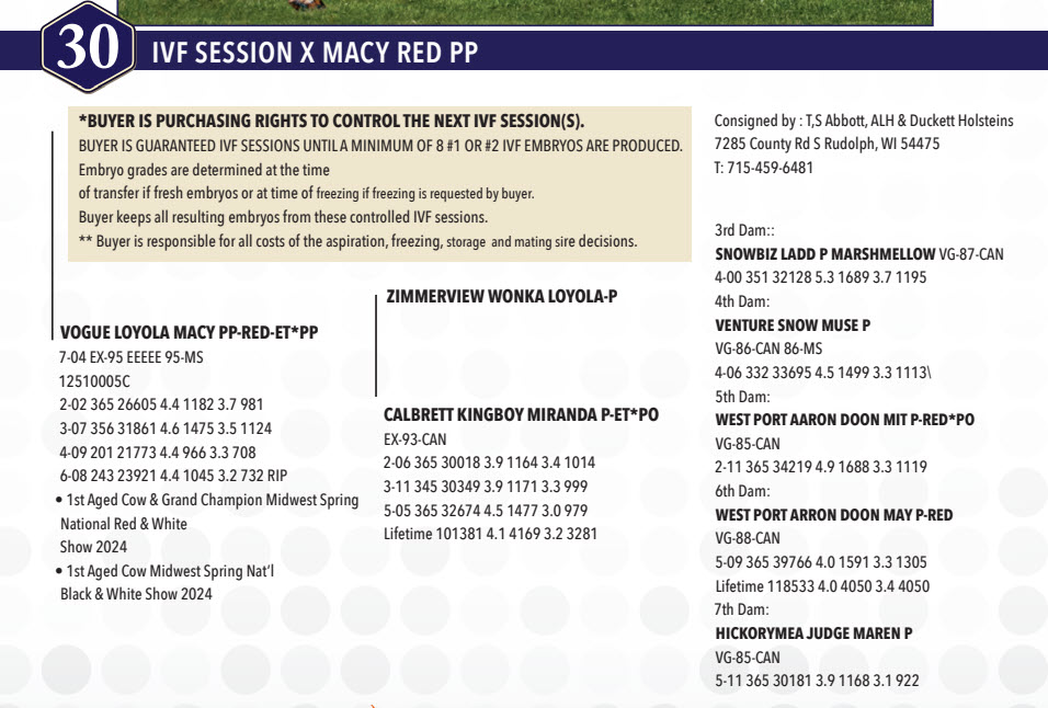 ** Buyer is responsible for all costs of the aspiration, freezing, storage and mating sire decisions