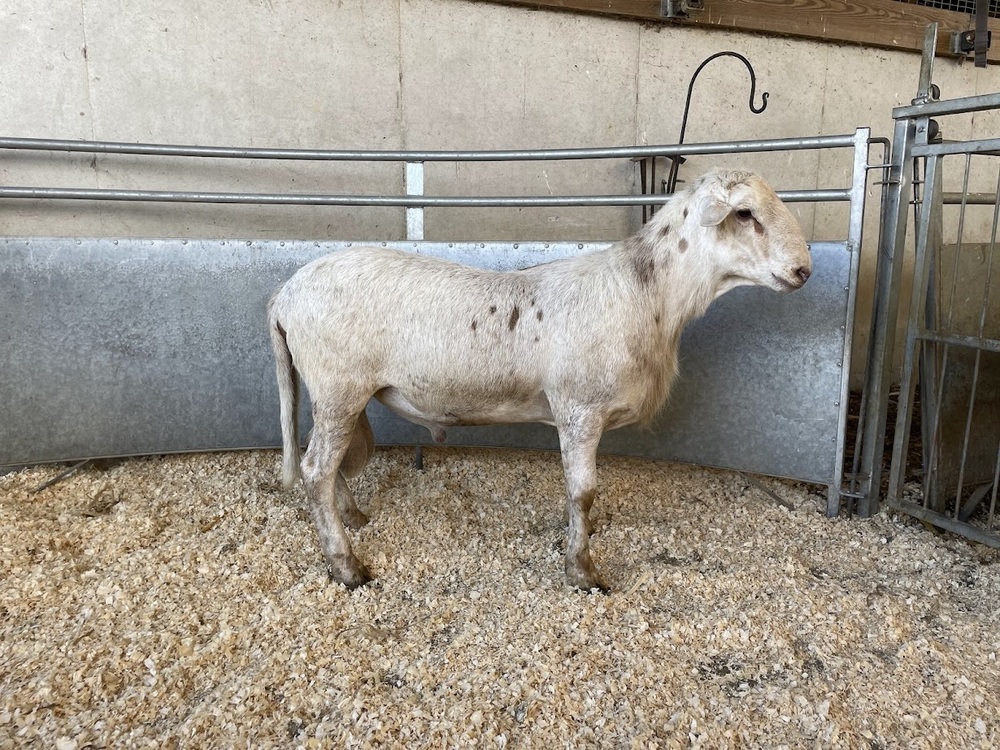 DESCRIPTION: Lot# 54 and 55 are full sidlings. Everthing about this ram says Stud! Well put together, great scrotal circumference, fast growth, balanced maternal traits and pretty markings for the cherry on top. His WWT is in the top 2% and PWWT top 1%.