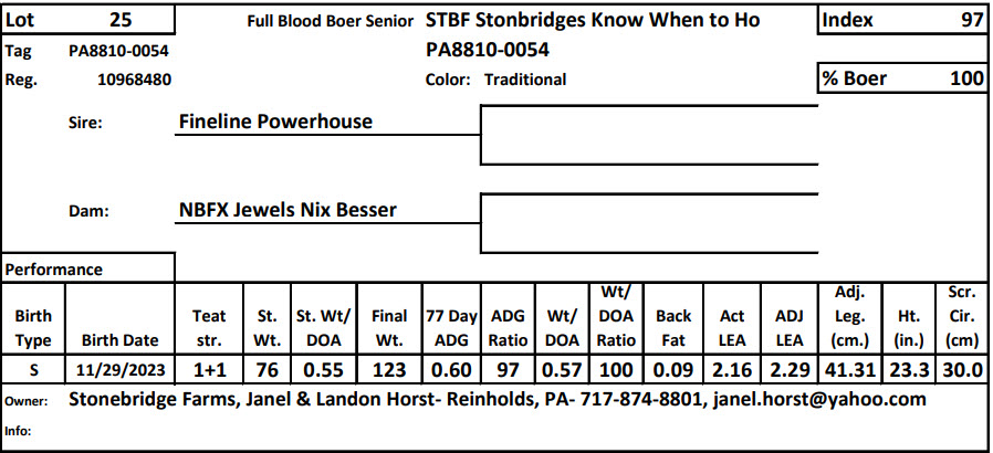 Stonebridge Farms, Janel & Landon Horst- Reinholds, PA- 717-874-8801, janel.horst@yahoo.com
