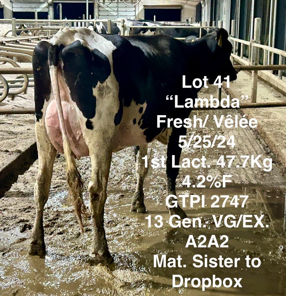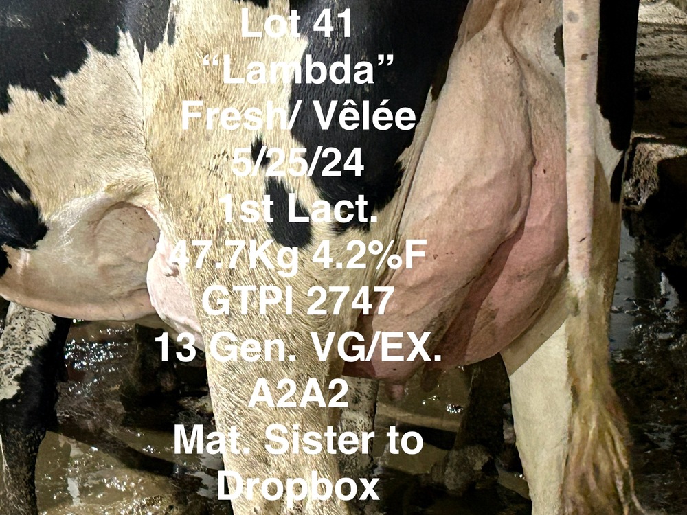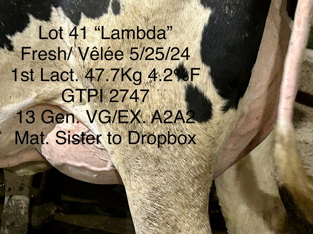 PEDIGREE: LAMBDA mat sister to DROPBOX - EX 91 Casper x EX 92 Delta Destiny 5 fils en IA x EX 94 Doorman x EX 94 Dorcy Dextra x 9 gen VG or EX