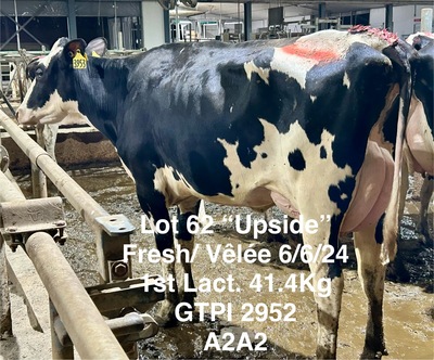 ENREG: USA003240589094 PERE: UPSIDE Lactation #: 1 LAIT KG: 41.3636363636364 SCC: 19 REPRO: FRAICHE NEE: 8/14/22 PEDIGREE: GP 83 Renegade x VG 87 Frazzled VELEE: 6/ 6/24