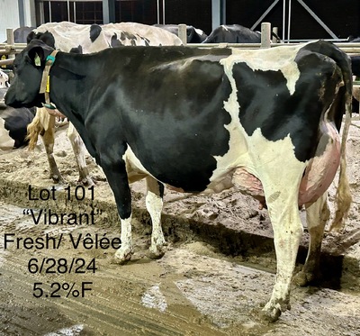 ENREG: 840003219927149 PERE: LEGACY Lactation #: 2 LAIT KG: SCC: REPRO: FRAICHE NEE: 08/29/20 PEDIGREE: VG Legacy x GP 83 5STAR x Vg 86 Mogul x 6 gen VG or EX Due juste avant l'encan VELEE: 07/29/24