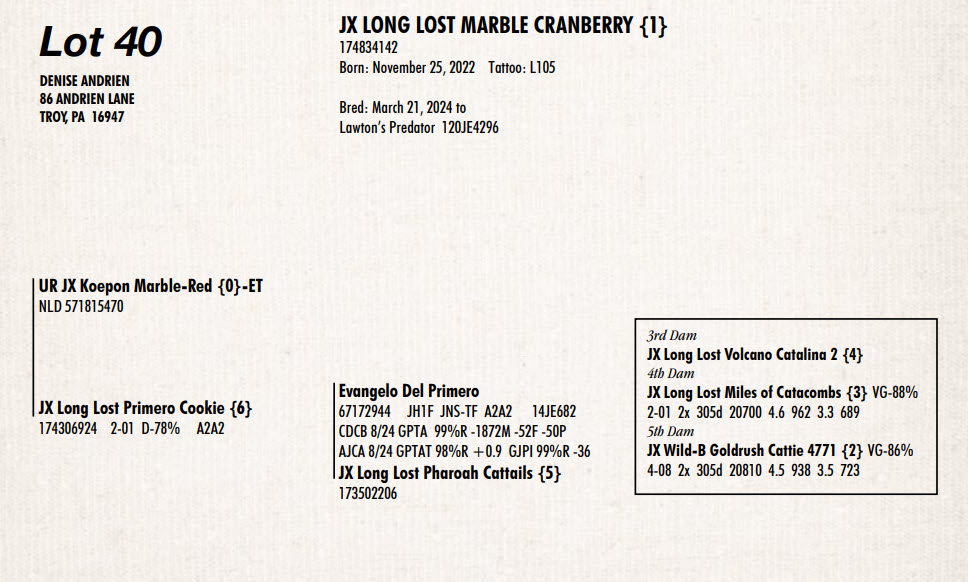 Bred: March 21, 2024 to Lawton’s Predator 120JE4296
