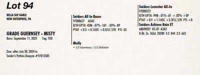 Bred: July 3, 2024 to Palmyra Lochinvar Reynolds-ET 9AY00133