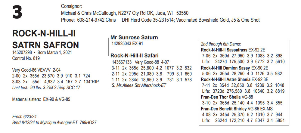 Last test: 90 lbs. 3.2%f 2.5%p SCC 17