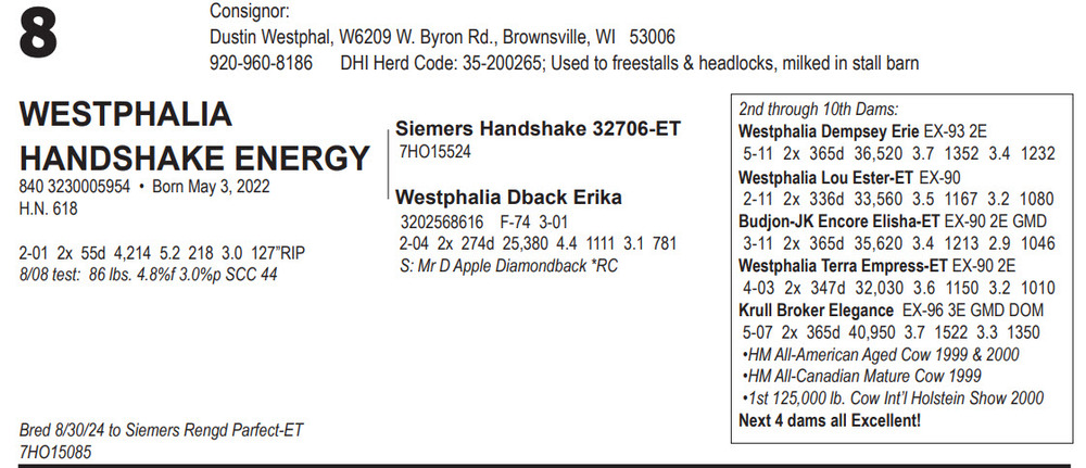 8/08 test: 86 lbs. 4.8%f 3.0%p SCC 44