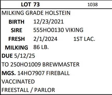 Brubacker Monthly Dairy Sale