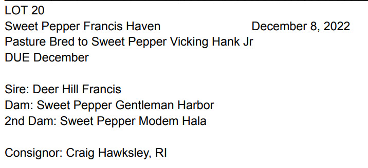 Pasture Bred to Sweet Pepper Vicking Hank Jr