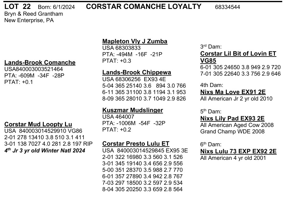 -Selling price is per Embryo or Straw of semen unless otherwise stated