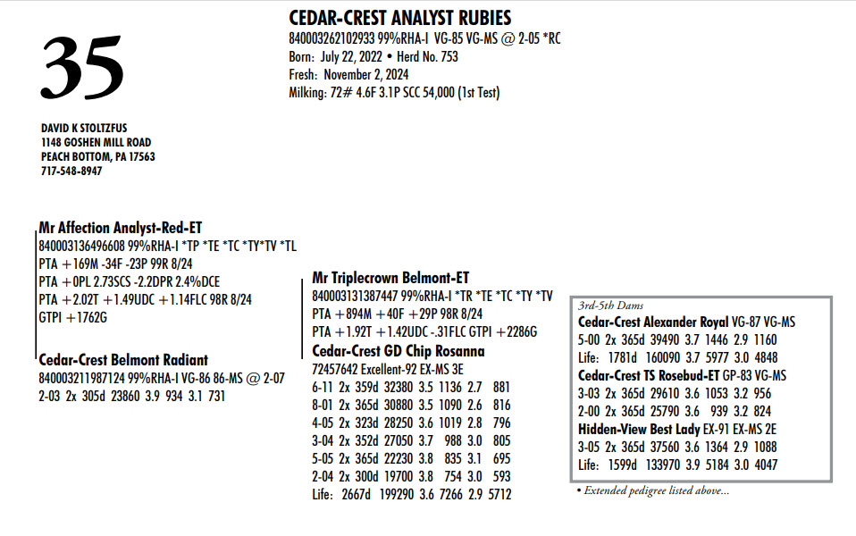 Milking: 72# 4.6F 3.1P SCC 54,000 (1st Test)
