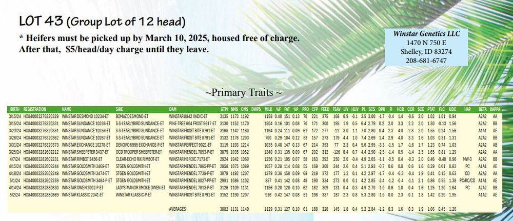 Heifers must be picked up by March 10, 2025, housed free of charge.